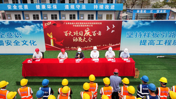 2021年3月29日上午,“百大项目庆百年”动员大会在集团公司承建的广州纳米生物安全中心总部园区一期项目现场隆重举行。建设单位广州纳米产业投资有限公司总经理李佩弦,广州珠江工程建设监理有限公司副总经理李晓光、分公司副总经理赵杰,广东省建筑设计研究院有限公司院副总工程师郭勇,完美网页版登录入口南方工程有限公司总经理、项目总指挥徐刚,项目书记招国樑以及各专业分包单位相关人员参加活动。